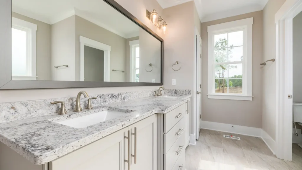 - Custom Stone Vanities: Natural stone surfaces such as engineered quartz or marble create a durable and visually striking centerpiece in the bathroom. Custom vanities also allow homeowners to tailor storage solutions to their needs.